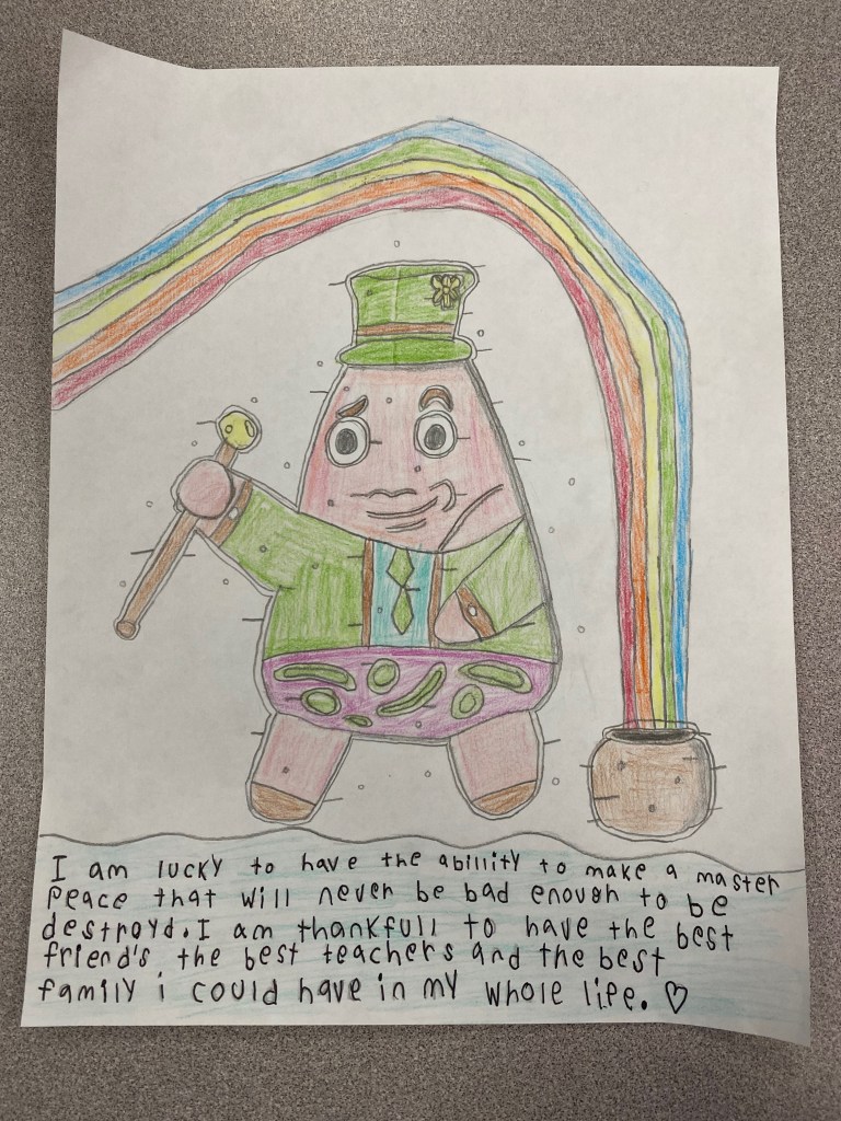 2025 St. Patty’s Art Contest Winners! We should always reflect on what we are grateful for. The prompt: “I’m lucky because…”