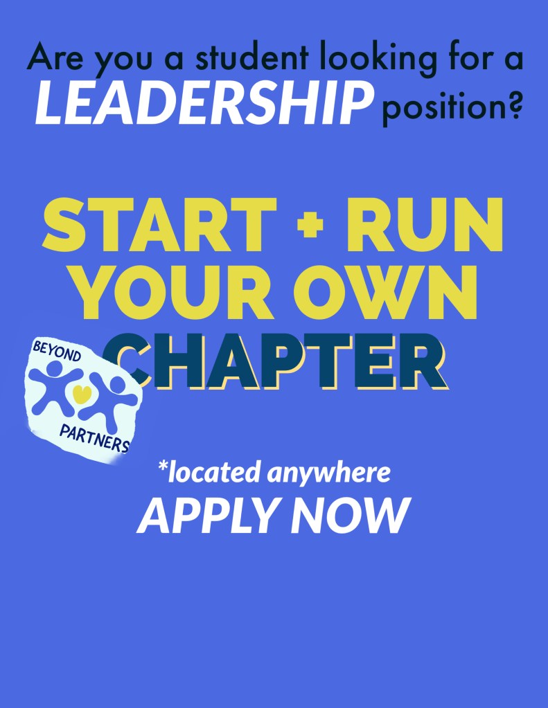 Are you a high school student looking to open a school chapter of our nonprofit? Lead a branch of our cause at your very own high school, wherever you are located, in the U.S. or internationally.
